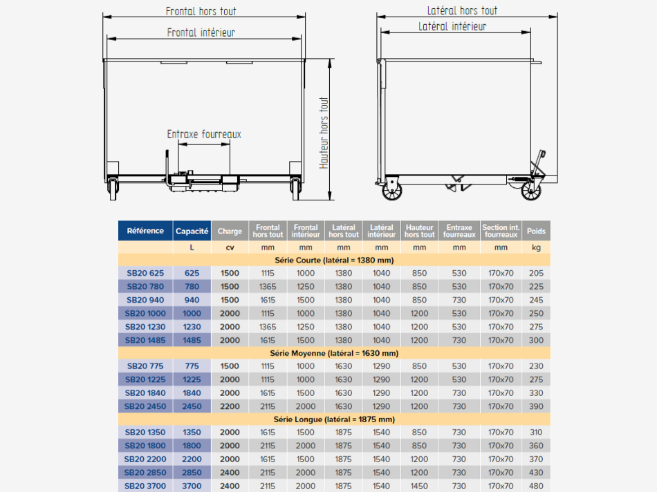Capacité 625 à 3700 litre. Charge < 2400 kg